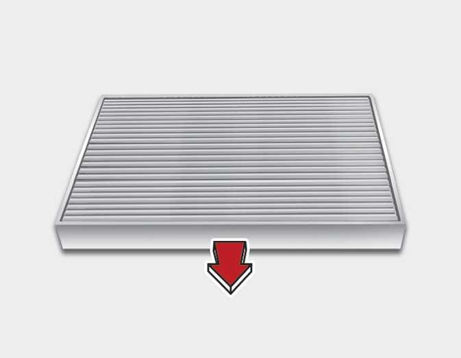공조 장치용 에어필터 받침대 커버의 오른쪽을 누른 상태에서 잡아당겨 빼내십시오.