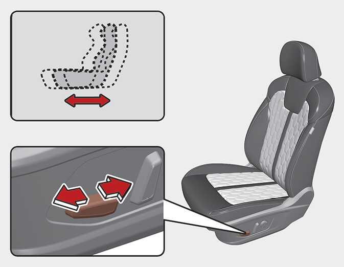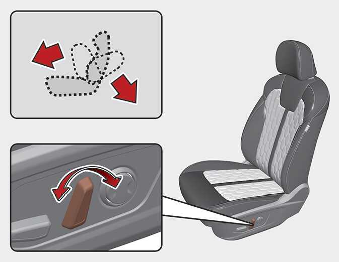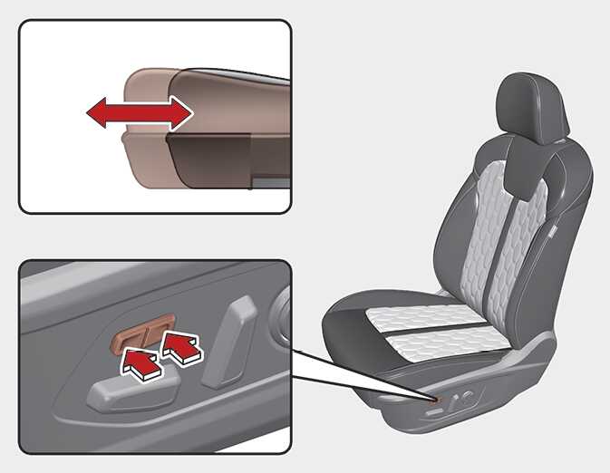 조절 스위치를 앞 또는 뒤로 움직이면 좌석이 앞 또는 뒤로 이동합니다. 원하는 위치에서 손을 떼십시오.