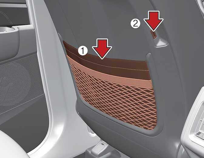 포켓에 날카로운 물건을 수납하면 급정차나 사고 시 뒷좌석 승객이 심각한 부상을 입을 수 있으므로 주의하십시오.