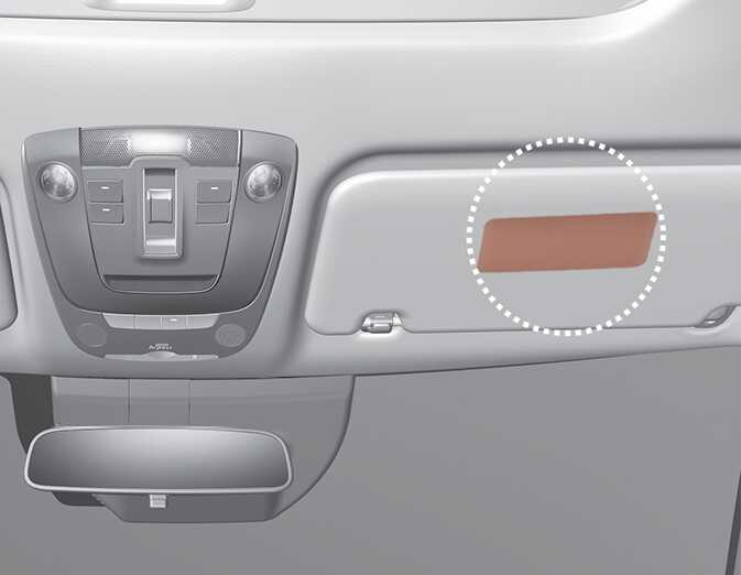 에어백의 위험을 알려 주고자 에어백 경고 라벨이 동승석 선바이저의 앞면과 뒷면에 부착되어 있습니다. 운행 전에 반드시 주의 사항을 숙지하십시오.