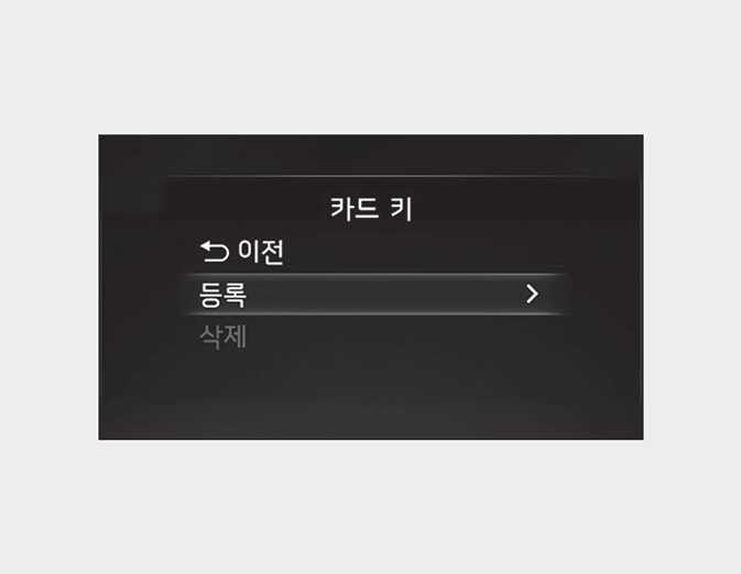 인포테인먼트 시스템 사양 미적용 시: 계기판 메뉴에서 '디지털 키→카드 키'하위 메뉴로 이동하여 '등록'을 누르십시오.