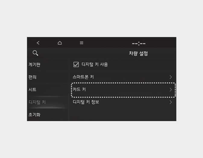 인포테인먼트 시스템 사양 미적용 시: 계기판 메뉴에서 '디지털 키→카드 키'하위 메뉴로 이동하여 '삭제'를 누르십시오.