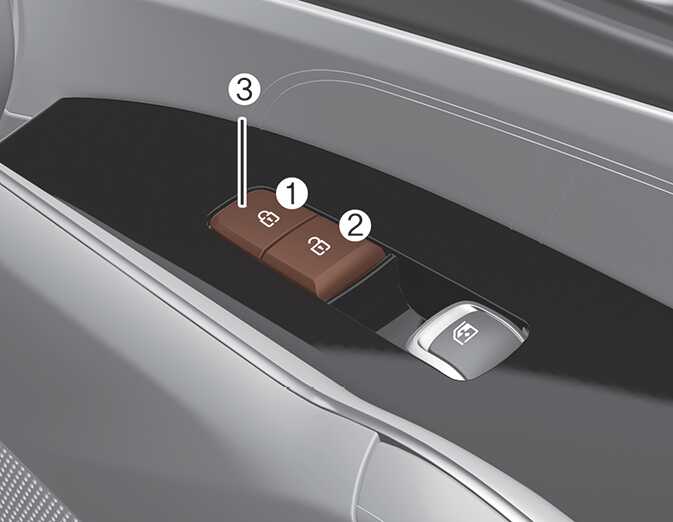 운전석 또는 동승석에 있는 잠금 버튼(1)을 누르면 모든 도어가 잠깁니다.