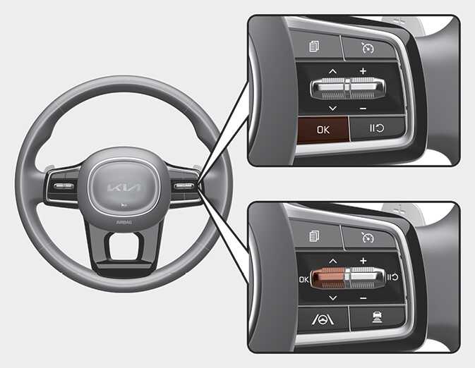 후석 승객 알림 시스템 2차 알림 기능 사용을 원치 않으경우 계기판 내 1차 알림이 표시될 때 스티어링 휠에 있는 「OK」 버튼을 눌러 끄십시오. 2차 알림이 1회 해제됩니다.
