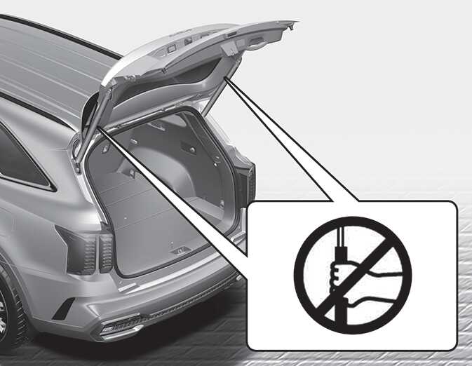 테일게이트를 지지하고 있는 부품(가스 리프터)을 잡지 마십시오. 이 부품을 잡고 힘을 가하면 안전사고의 위험이 있으니 주의하십시오.