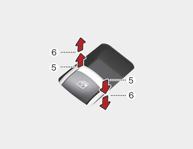 해당 유리창 개폐 스위치를 첫 번째 걸리는 위치(5)까지 누르거나 당기면 해당 유리창이 열리거나 닫힙니다.