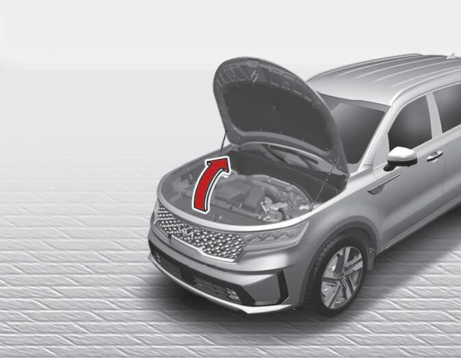 엔진 후드 열림 레버를 당기십시오. 엔진 후드가 조금 열립니다.