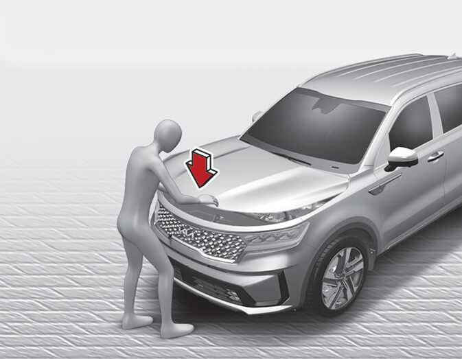 완전히 닫지 않은 상태로 주행하면 엔진 후드가 열릴 수 있어 사고가 발생 할 수 있습니다.