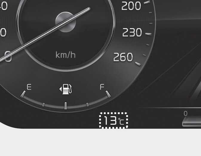 계기판에 차량 외부의 온도를 표시합니다. 표시 범위는 -40°C~85°C 입니다.