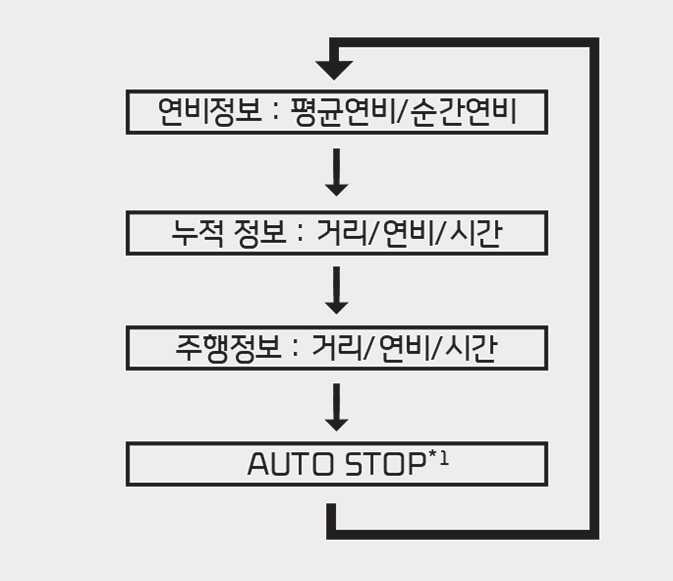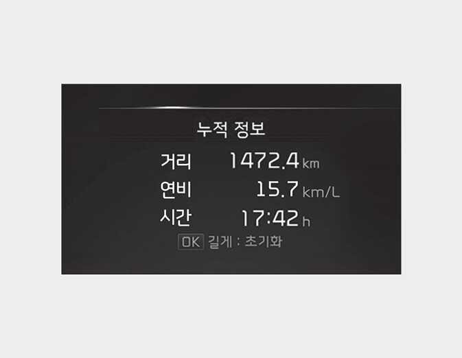 누적 연비: 누적 연비가 표시된 상태에서 「OK」 버튼을 약 1초 이상 누르면 초기화됩니다.