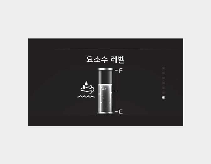 요소수 탱크에 남아 있는 요소수 양을 표시합니다. 요소수 레벨이 "E"를 가리키기 전에 요소수를 보충하십시오. 자세한 내용은 배출 가스 제어 장치의 관리 및 정비의 내용을 참고하십시오.