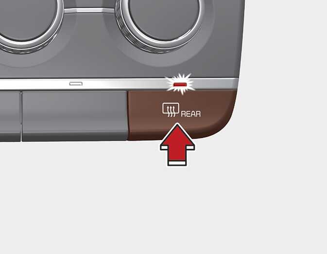 엔진에 시동을 건 상태에서 버튼을 누르면 버튼 내 표시등이 켜져 사용 중임을 알려주고 열선이 작동해 뒷유리의 서리가 제거됩니다.