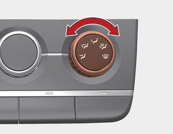 발끝으로 바람이 나오게 함과 동시에 앞유리 습기를 제거할 때 사용합니다. (유리창 습기 방지 기능이 설정된 경우 에어컨과 외기 유입 모드가 자동으로 선택됩니다.) |