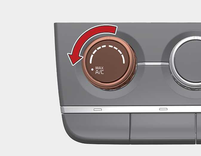 히터나 에어컨이 작동하는 상태에서 온도 조절 노브를 「MAX A/C」 위치에 두면 다음과 같이 자동으로 작동합니다.