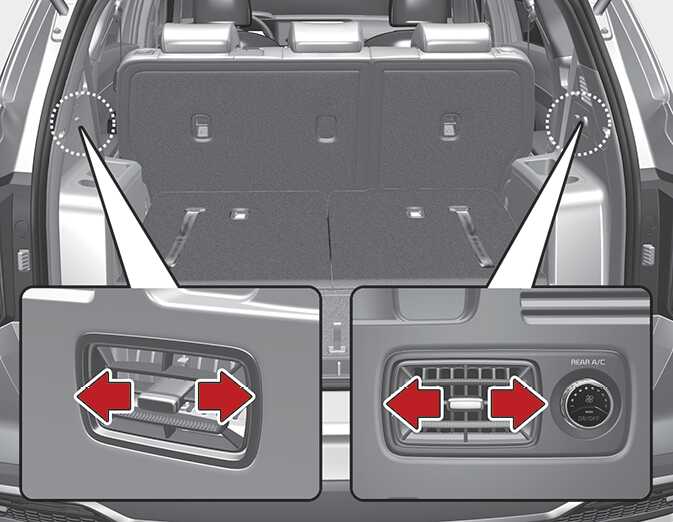 3열 송풍구 바람은 러기지 트림에 있는 3열 좌석 에어컨 스위치로 조절됩니다.