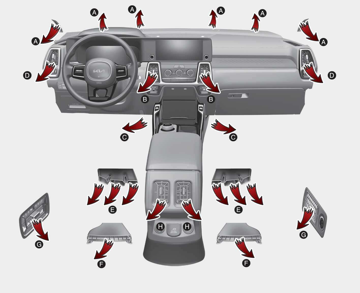 2열 송풍구: ⓔ, ⓗ/3열 송풍구: ⓕ, ⓖ