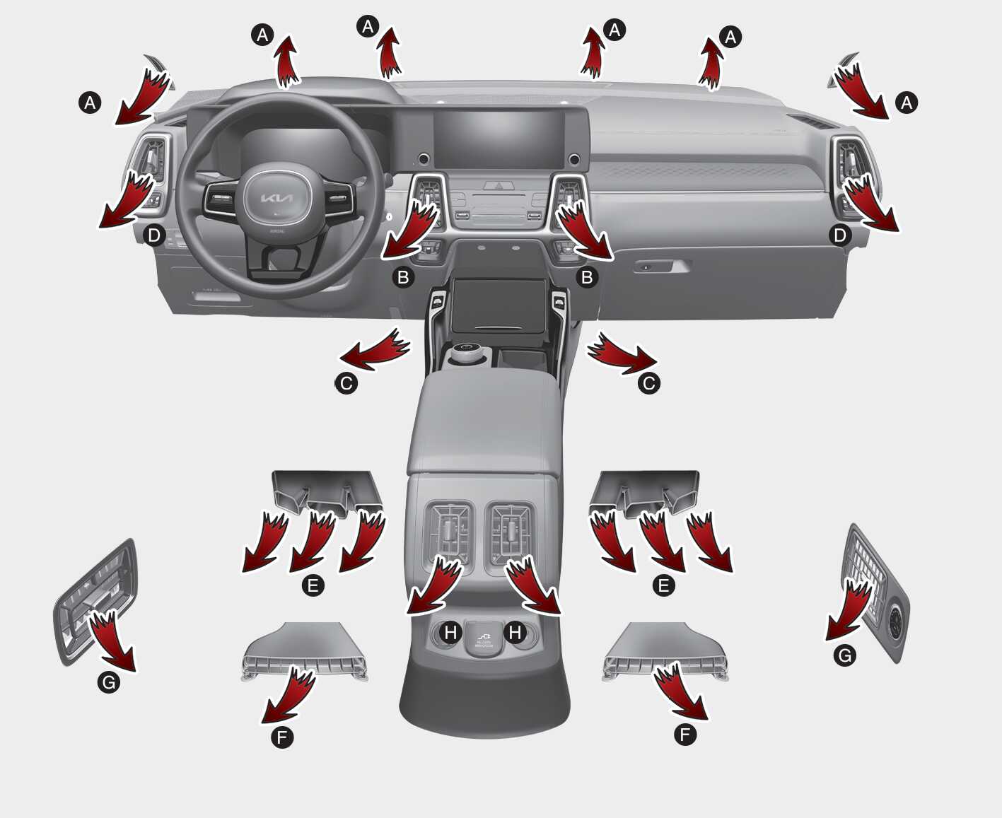 2열 송풍구: ⓔ, ⓗ/3열 송풍구: ⓕ, ⓖ