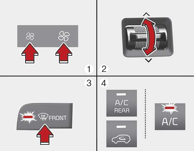 외기 유입이 자동으로 선택되며 외부 온도에 따라 에어컨도 자동으로 작동됩니다. (유리창 습기 방지 기능이 설정된 경우) 외기 유입 모드 및 에어컨이 자동으로 선택되지 않을 경우에는 해당 버튼을 눌러 작동하십시오.