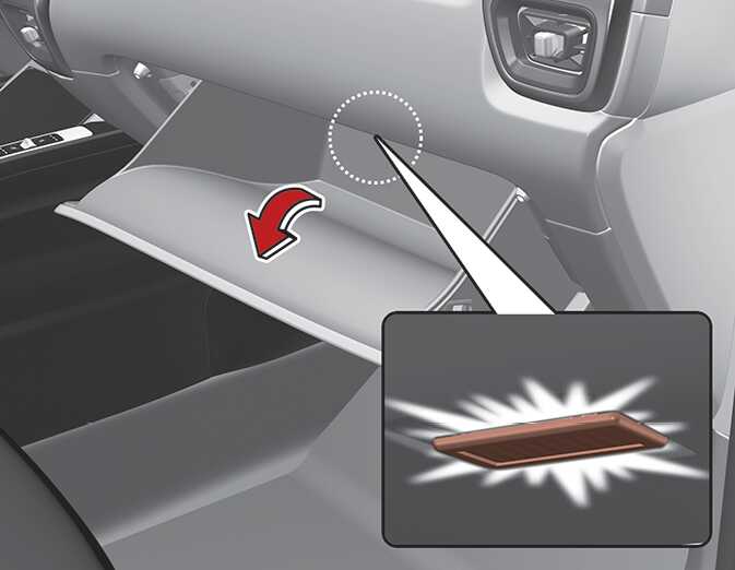 글로브 박스를 열면 램프가 켜지고, 글로브 박스를 닫으면 램프가 꺼집니다.