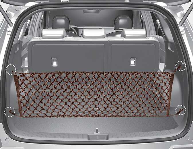 화물 고정 장치(그물망) 안에 너무 부피가 크거나 많은 물건을 넣지 마십시오. 손상될 수 있습니다.
