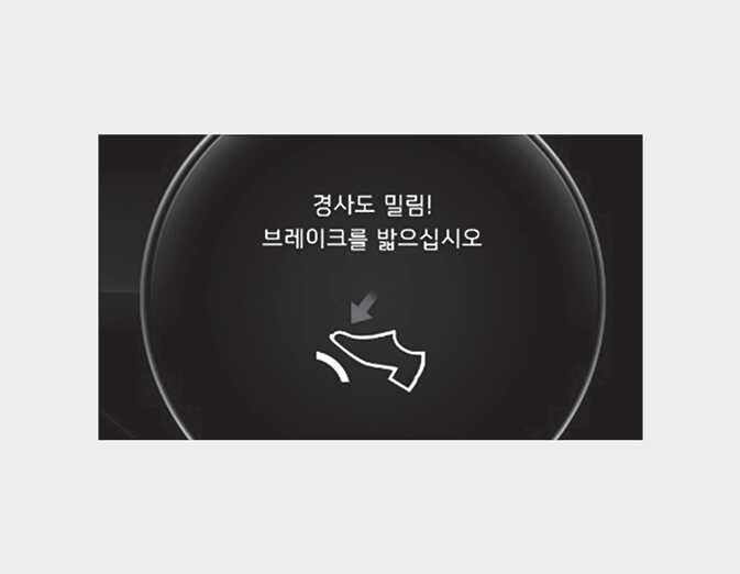 이 경우 LCD 경고창에 경고 메시지가 나타나며, 지시에 따라 브레이크 페달을 밟으십시오.