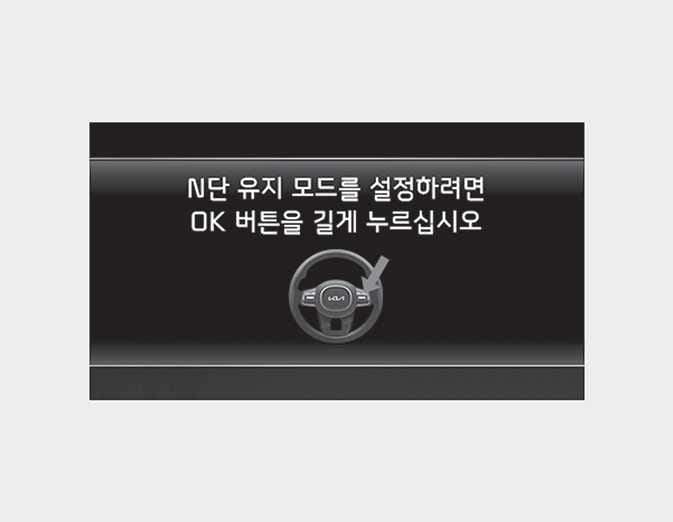 계기판에 "N단 유지 모드를 설정하려면 OK 버튼을 길게 누르십시오" 메시지가 뜰 경우 스티어링 휠에 있는 OK 버튼을 길게 누르십시오.