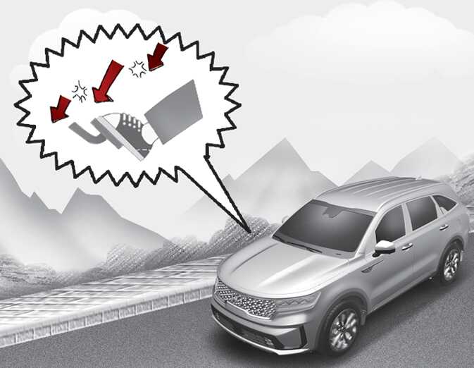 브레이크 장치가 젖을 정도로 깊은 물이 있는 곳을 주행하는 것은 정상적인 브레이크 작동을 방해합니다. 브레이크 장치가 젖어 제동 효과가 떨어졌을 때는 브레이크를 건조하기 위해 안전거리를 유지한 상태에서 정상적인 브레이크 작동 시까지 수 회 가볍게 브레이크 페달을 밟으십시오. 물이 고인 곳을 주행했을 때나 세차 후에는 브레이크 성능을 점검하십시오.