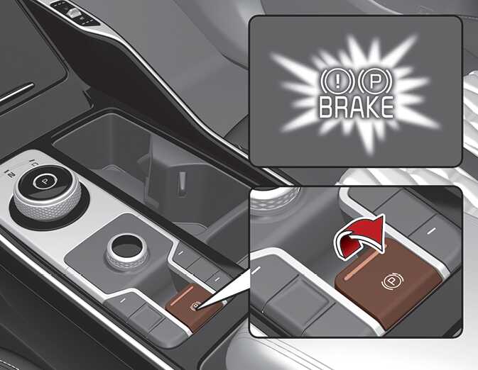 운전 종료 후 차를 멈추고 브레이크 페달을 밟은 상태에서 전자식 파킹 브레이크(EPB) 스위치를 당기면 전자식 파킹 브레이크가 체결됩니다.