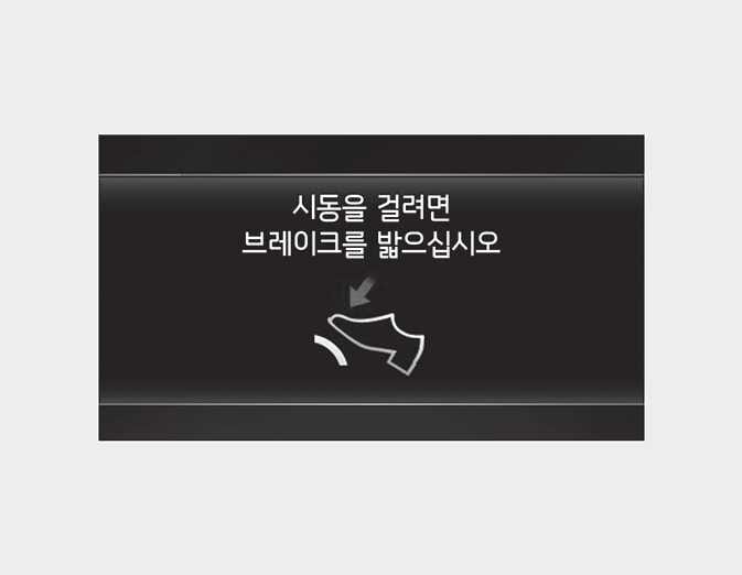 반드시 브레이크 페달을 밟고 시동을 거십시오. 그렇지 않을 경우 예상치 못한 차량의 갑작스러운 움직임으로 인해 사고가 날 수 있습니다.