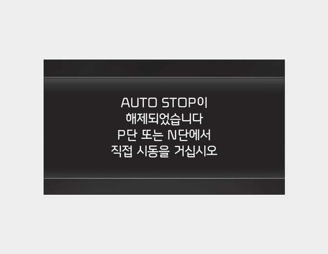 AUTO STOP이 해제되었습니다. P단 또는 N단에서 직접 시동을 거십시오.