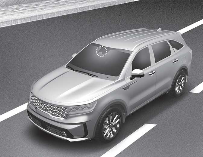 전방 카메라 렌즈 앞유리창에 액세서리, 선팅 필름 및 스티커 등을 붙이지 마십시오.