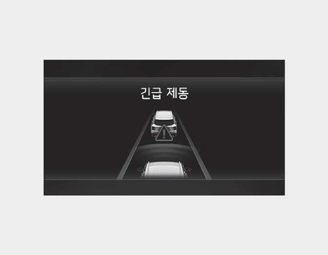 긴급 제동 시 강한 제동력으로 제동 제어가 작동하여 전방 차량과의 충돌방지를 도와줍니다.