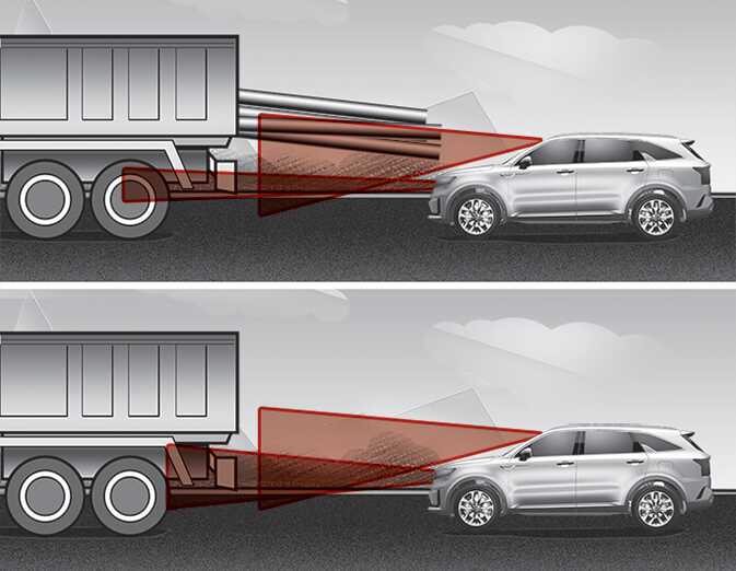 다른 차량이나 트레일러를 견인할 경우 제어 안전성이 떨어질 수 있으므로 전방 충돌방지 보조를 사용하지 않을 것을 권장합니다.