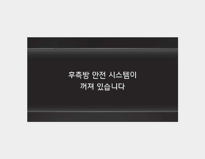 후측방 안전 기능을 '끄기'로 선택한 상태에서 시동 「OFF」→「ON」 시 계기판에 경고 메시지가 표시됩니다.