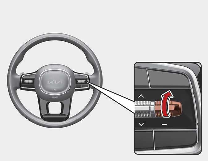- 「+」 스위치를 길게 올릴 경우 10의 배수로 설정속도가 증가됩니다. 계기판 속도 단위를 mph로 설정하면 5의 배수로 설정속도가 증가됩니다. 약 180 km/h 까지만 속도가 설정됩니다.