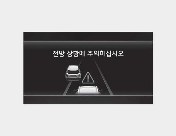 다음과 같은 상황이 발생할 경우 계기판에 경고 메시지가 표시되고, 경고음이 울려 운전자에게 전방 상황 주의를 알립니다.