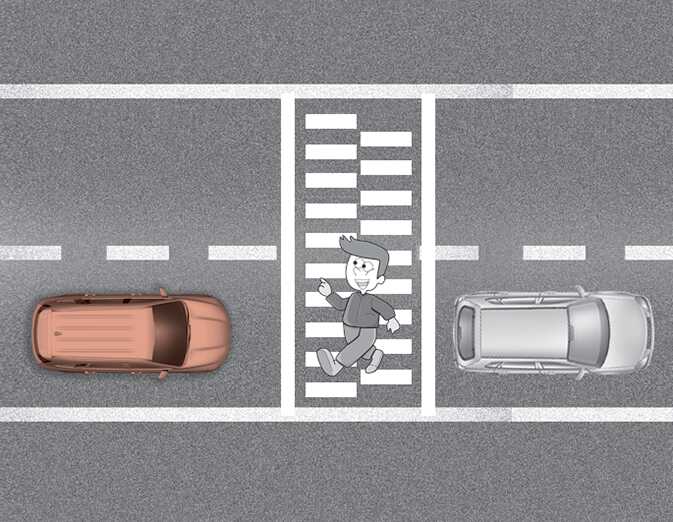 옆 차로의 차량(B)이 자차(A)와 같은 차로로 진입할 경우 센서의 감지 범위 안으로 들어올 때까지 전방의 차량(B)을 인식하지 못 할 수 있습니다.