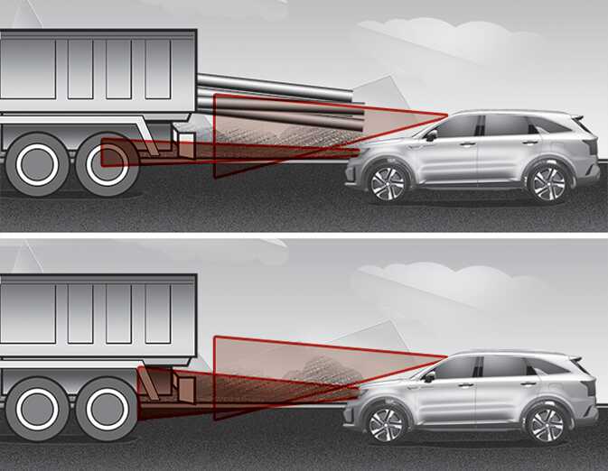전방 차량이 빠져 나가는 경우 전방 상황을 인지하지 못해 충돌할 수 있으므로 주의를 기울이십시오.