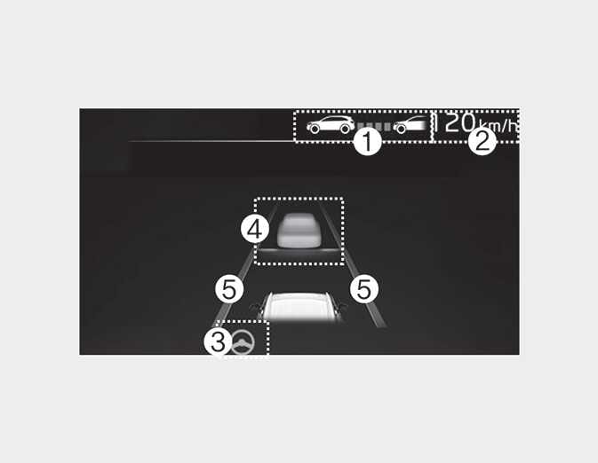 고속도로 주행보조의 상태를 보기 위해서는 계기판을 주행 보조 모드로 설정하십시오. 계기판을 주행 보조 모드로 설정하기 위한 자세한 내용은 계기판의 내용을 참고하십시오.