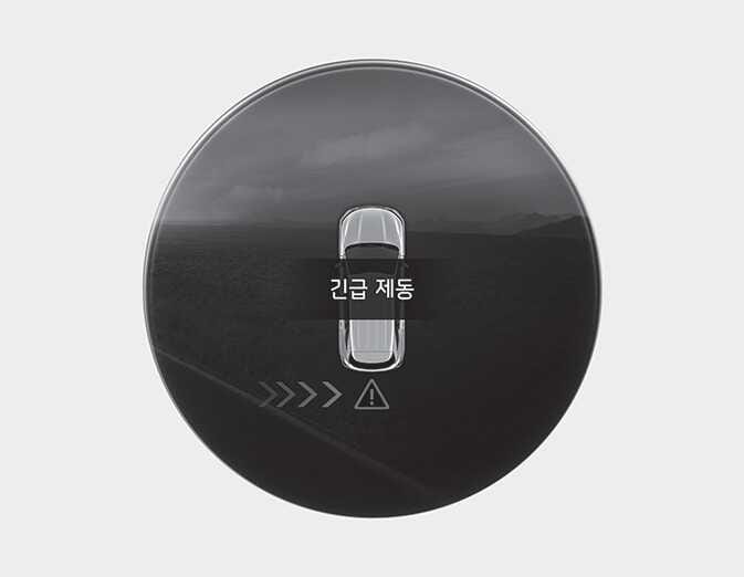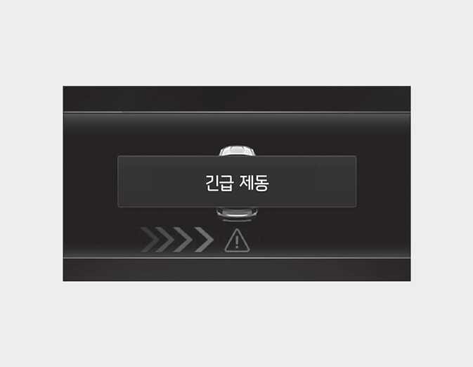 실외 미러 경고등이 깜빡이고 계기판에 경고 메시지가 표시됩니다. 동시에 경고음이 울리며, 긴급 제동을 운전자에게 알립니다. 인포테인먼트 시스템 화면(사양 적용 시)의 후방 영상에도 경고가 표시됩니다.