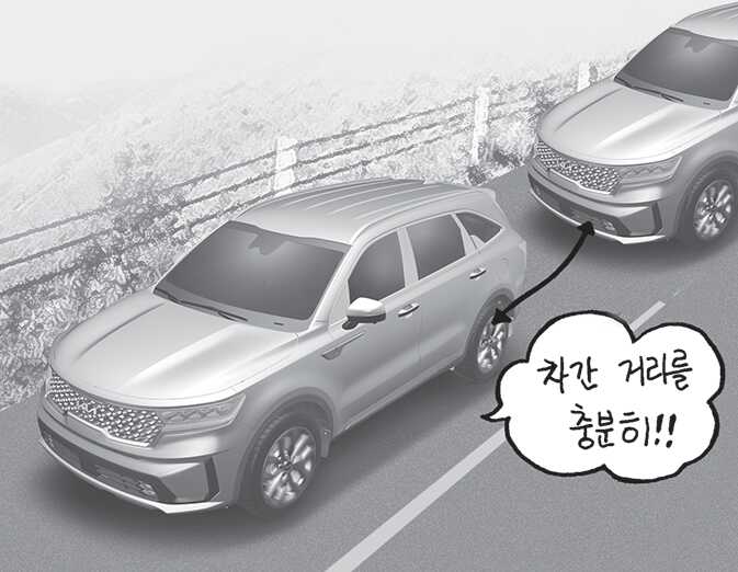 차간거리를 충분히 확보하고 스티어링 휠을 천천히 조작하십시오.