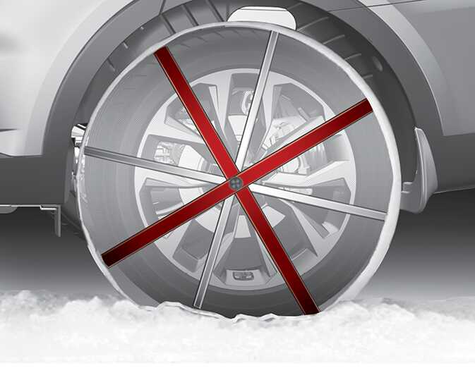 알루미늄 휠 장착 차량은 체인을 사용하면 휠이 손상될 우려가 있으므로 체인을 사용하지 마십시오.