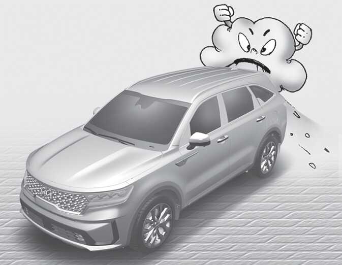 주차 시는 차의 앞부분을 바람이 부는 반대쪽으로 향하게 하십시오.