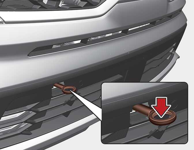바퀴가 진흙, 모래 또는 차량 자체의 힘으로는 빠져 나올 수 없는 상태일 경우 비상 견인 고리를 이용하여 차량을 견인하지 마십시오.