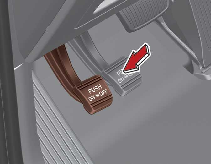 - 평탄하고 안전한 장소에 주차한 후 주차 브레이크를 완전히 해제한 상태에서 주차 브레이크를 20 kg의 힘으로 밟았을 때 4~5회 "딸깍"하는지 확인하십시오.