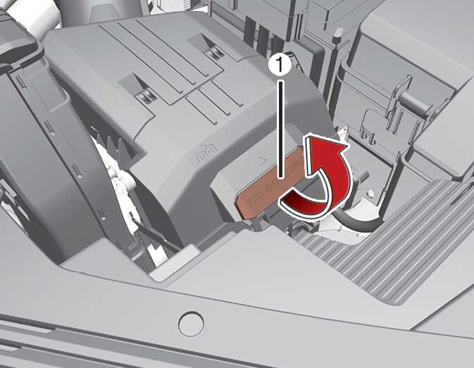 에어 클리너 커버측 레버(1)를 위로 당겨 잠금 상태를 해제하십시오.
