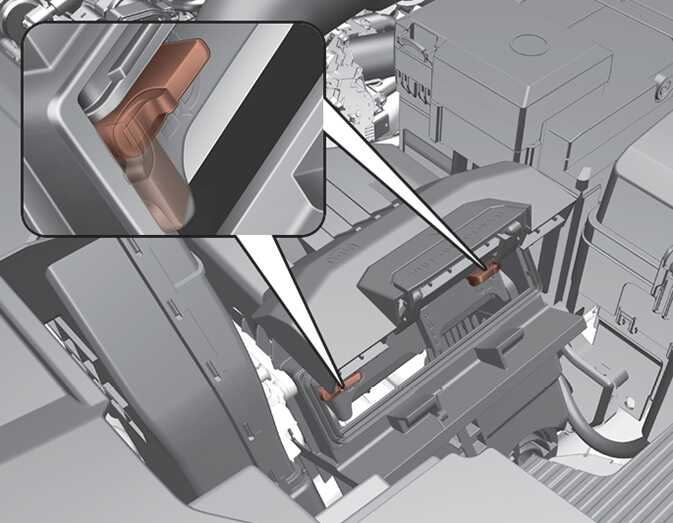 에어 클리너 필터 분리 시 에어플로우 센서에 충격을 가하거나 공기 흡입구에 먼지나 오염 물질이 들어가지 않도록 주의하십시오.