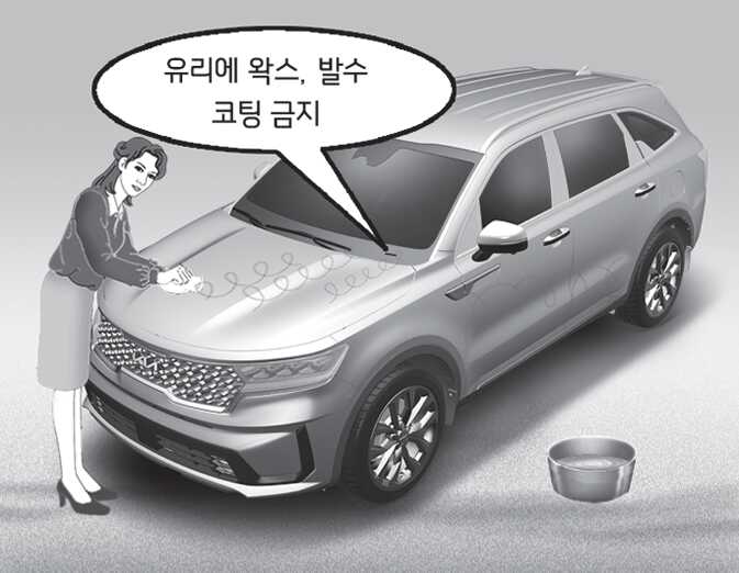 앞유리에 왁스가 묻으면 와이퍼가 손상될 수 있으므로 주의하십시오.