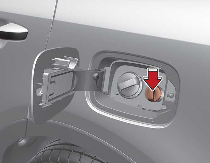 주차 브레이크를 체결 후 연료 주입구 커버를 여십시오.
