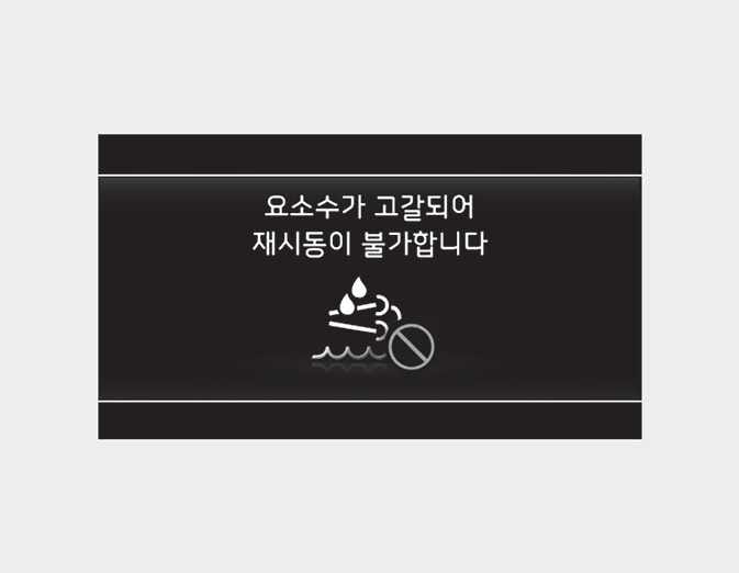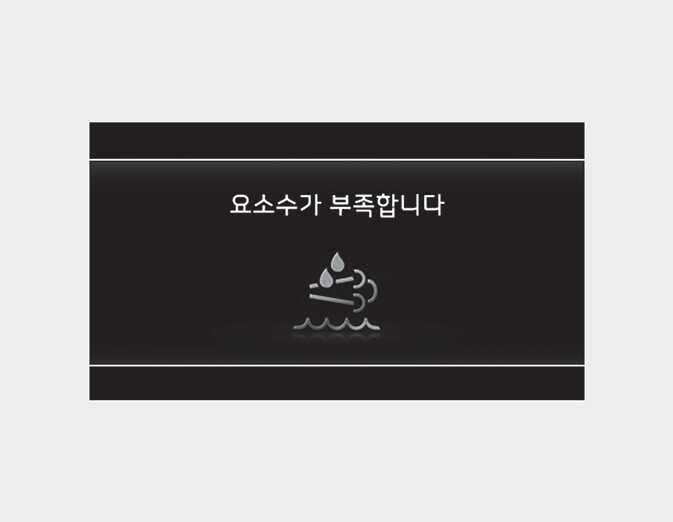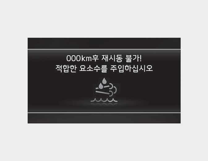 "요소수가 고갈되어 재시동이 불가합니다" 경고 메시지가 표시되면 요소수를 충분히 보충하십시오.